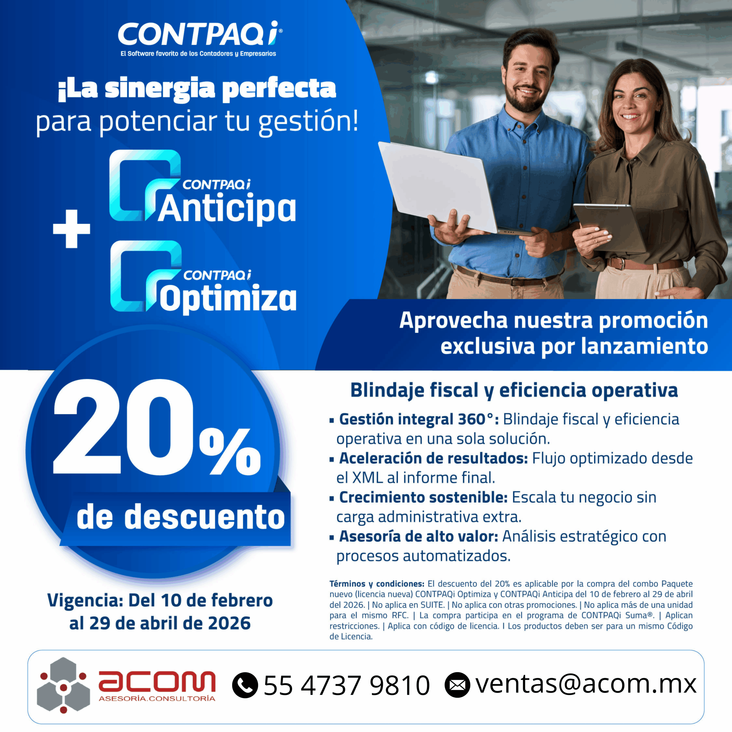 Desde software especializado hasta servicios de consultoría, tenemos soluciones que se adaptan a las necesidades de tu empresa. Además, contamos con promociones exclusivas y talleres sin costo, diseñados para que aproveches al máximo nuestras herramientas. Nos dedicamos a ofrecerte calidad, simplificando tu trabajo y ayudándote a alcanzar tus metas financieras.